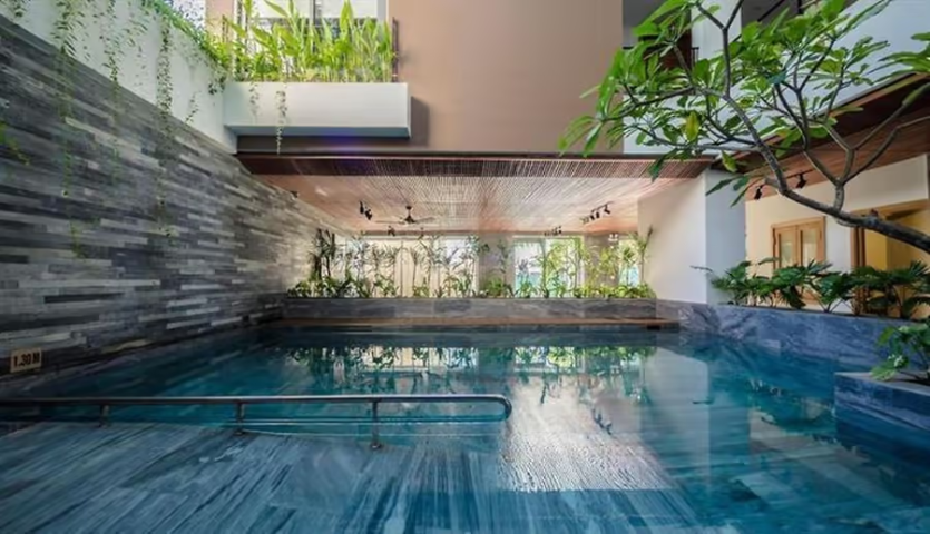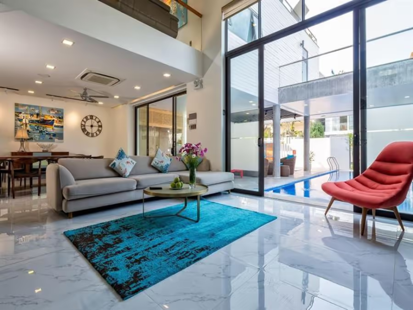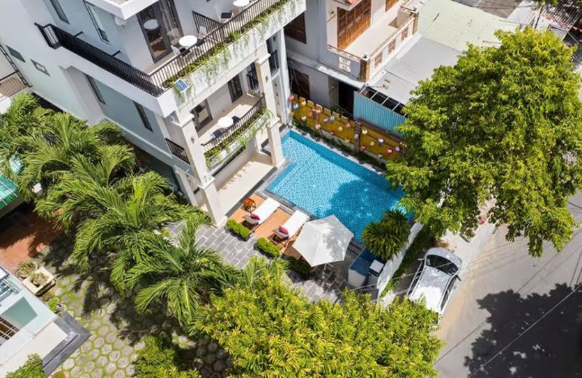 다낭에 위치한 럭셔리 풀빌라로 넓은 디자인과 야외 수영장을 갖추고 있습니다. 고급스러운 디자인, 편안한 가구, 야외 파티에 적합한 넓은 수영장, 3층으로 구성된 고급스러운 객실과 요리가 가능한 넓은 주방도 갖추고 있습니다.